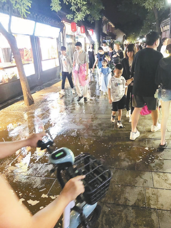 在南锣饱读巷,每天晚上餐饮商户王人会清洗店门前路面上的油泥,酿成路面浑水横流。但愿清洗责任能晚小数,等旅客减少的本事再运转。 吴晓晨 7月21日摄 (原标题:浑...